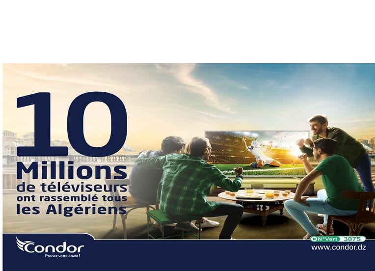 Le leader algérien profite de cette occasion pour remercier ses clients qui lui sont fidèles depuis 2002, date du lancement de la première unité de fabrication de téléviseurs Condor à Bordj Bou Arreridj. « Vous nous avez choisi, vous pouvez être fier de vous, vous pouvez être fier de nous, on continuera à vous satisfaire ». Condor, leader du marché des TV en Algérie, une marque de fiabilité, une marque à 10 millions de consommateurs, une marque qui a rassemblé tous les Algériens.