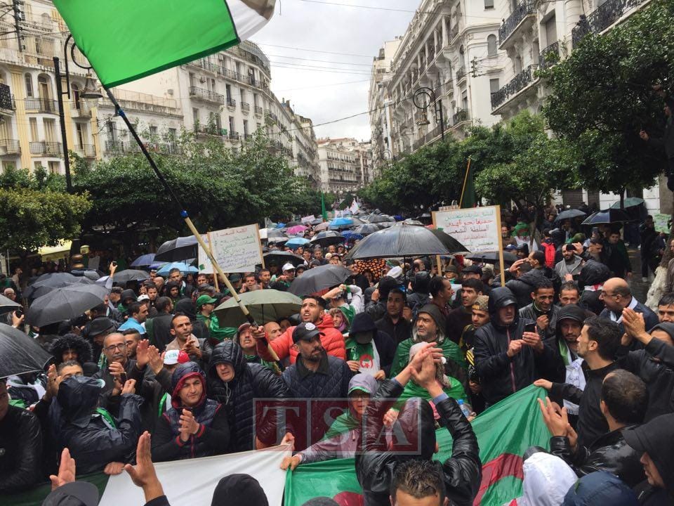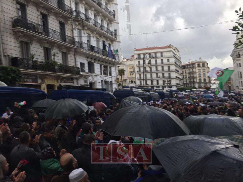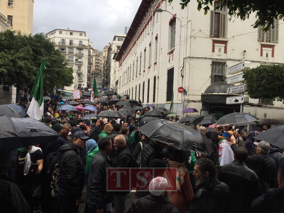 14h20. Alger : sous la pluie et la grêle, les manifestants scandent : « Istiqlal ».