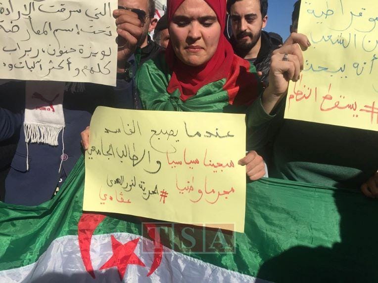 Abdou, animateur des manifestations estudiantines, a, dans son intervention, rendu hommage aux manifestants de Tiaret et de Sidi Bel Abbès qui « ont maintenu la mobilisation malgré la répression qu’ils subissent depuis plus d’un mois ».