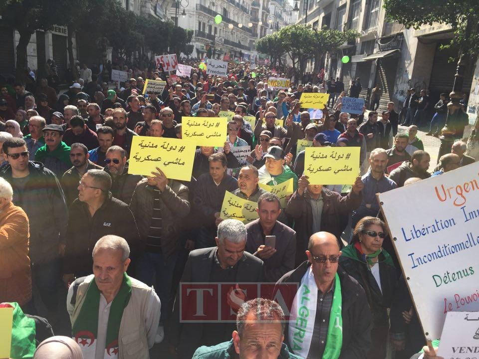 À Alger, comme vendredi passé, toutes les principales rues ont été prises d’assaut dès la fin de la prière. « Echaab Yourid el istiqlal », répétaient à l’envi des milliers de voix. Qu’elles soient transcrites sur des banderoles, des pancartes ou entonnées à l’unisson, toutes les revendications portent sur un changement démocratique, l’indépendance de la justice, la poursuite de la lutte pacifiquement, la libération des détenus d’opinion, particulièrement celles des figures en vue dont des portraits sont toujours omniprésents à l’image de Karim Tabbou ou de Fodil Boumala, ou encore pour l’avènement d’un « État civil et non militaire « , et l’indépendance de la justice.