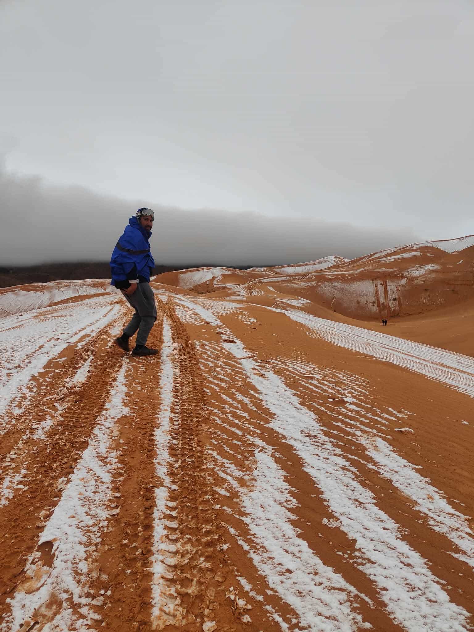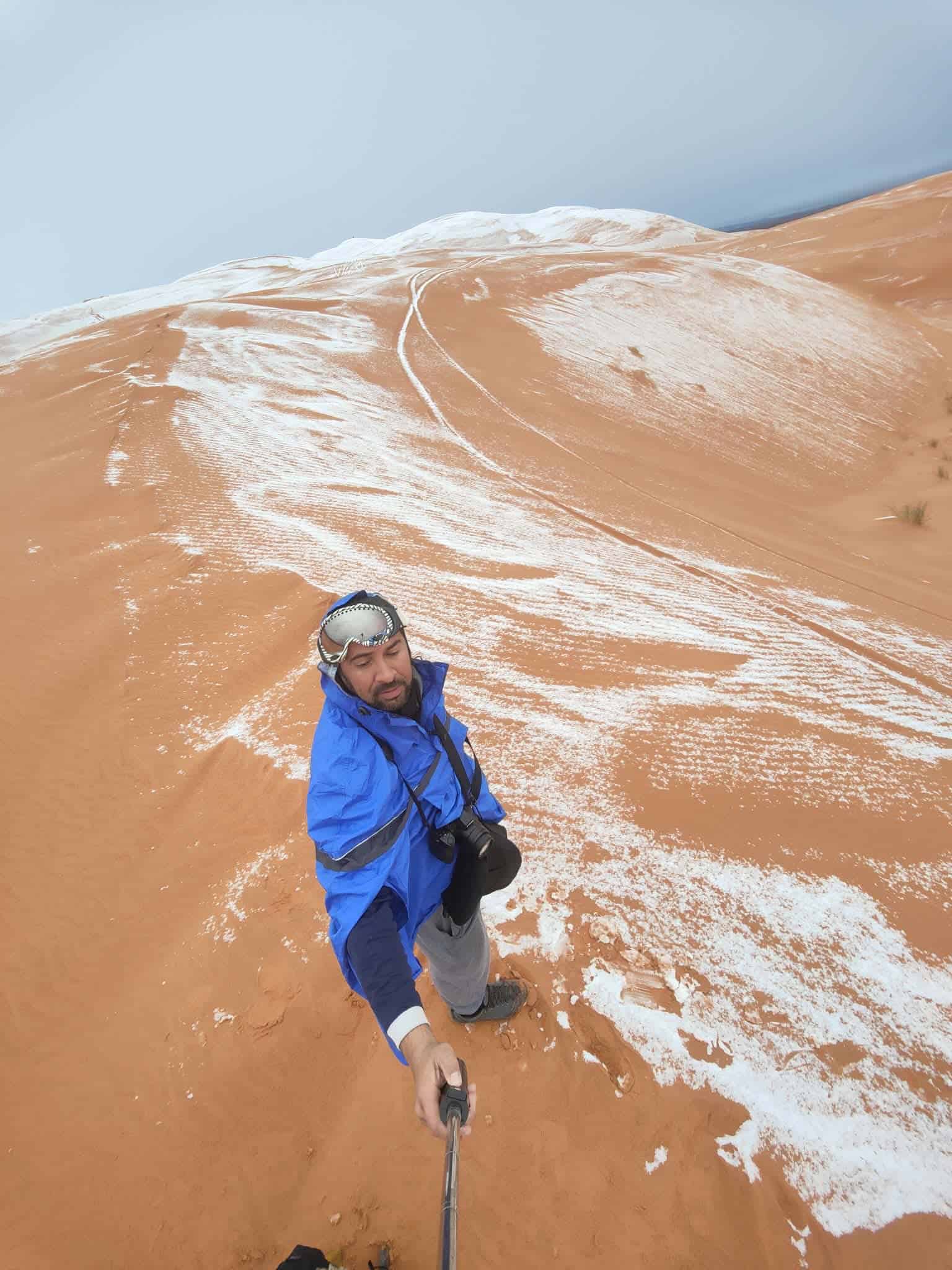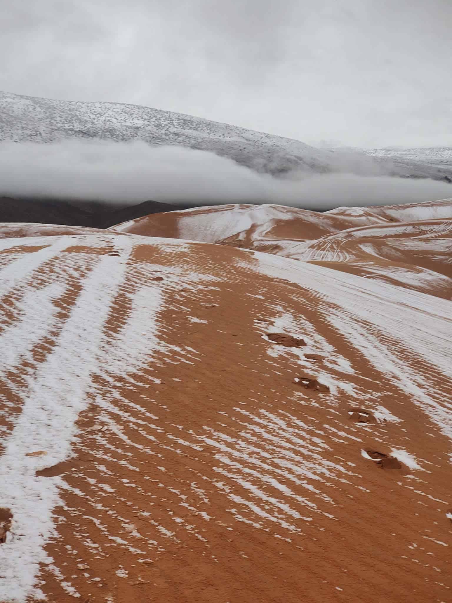 Phénomène rare : de la neige sur des dunes du Sahara algérien