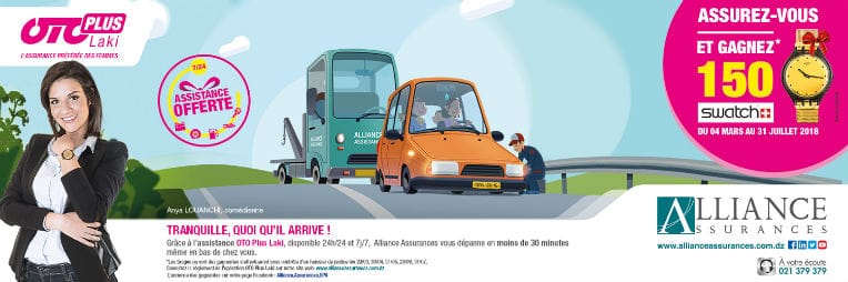 Sous le slogan « Assurez-vous et gagnez 150 montres Swatch », Alliance Assurances, premier assureur ayant conçu une assurance dédiée à la gent féminine, lance cette année une campagne dédiée exclusivement aux conductrices détentrices de l’assurance automobile « OTO Plus Laki » acquise entre le 4 mars et le 31 juillet 2018 pour leur rendre hommage à l’occasion de la fête internationale de la femme.