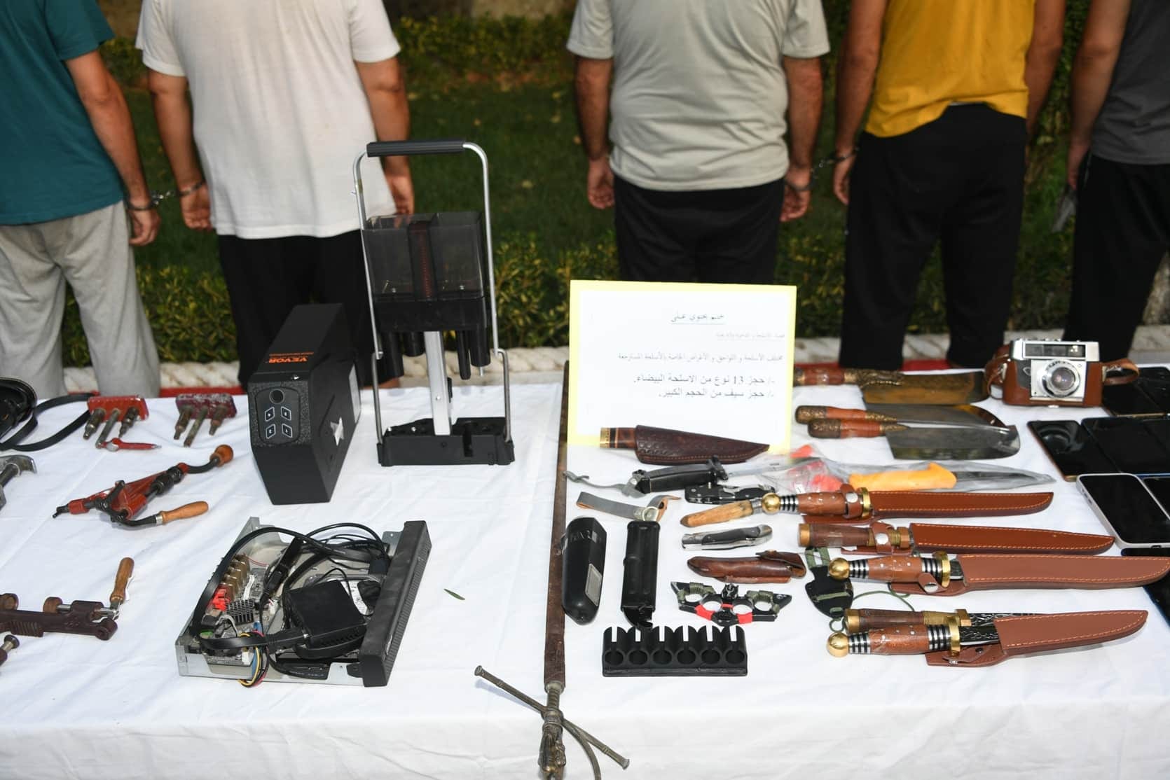 Le MDN a aussi détaillé les armes et les équipements saisis, soit 46 armes à feu de différents calibres, une quantité importante de cartouches, de balles et de projectiles de divers calibres, 12 jumelles, 10 armes blanches, un ensemble de pièces et accessoires pour armes à feu, des équipements et des matières premières pour la fabrication de munitions, un appareil de géolocalisation GPS, des ordinateurs et téléphones portables et divers autres objets.