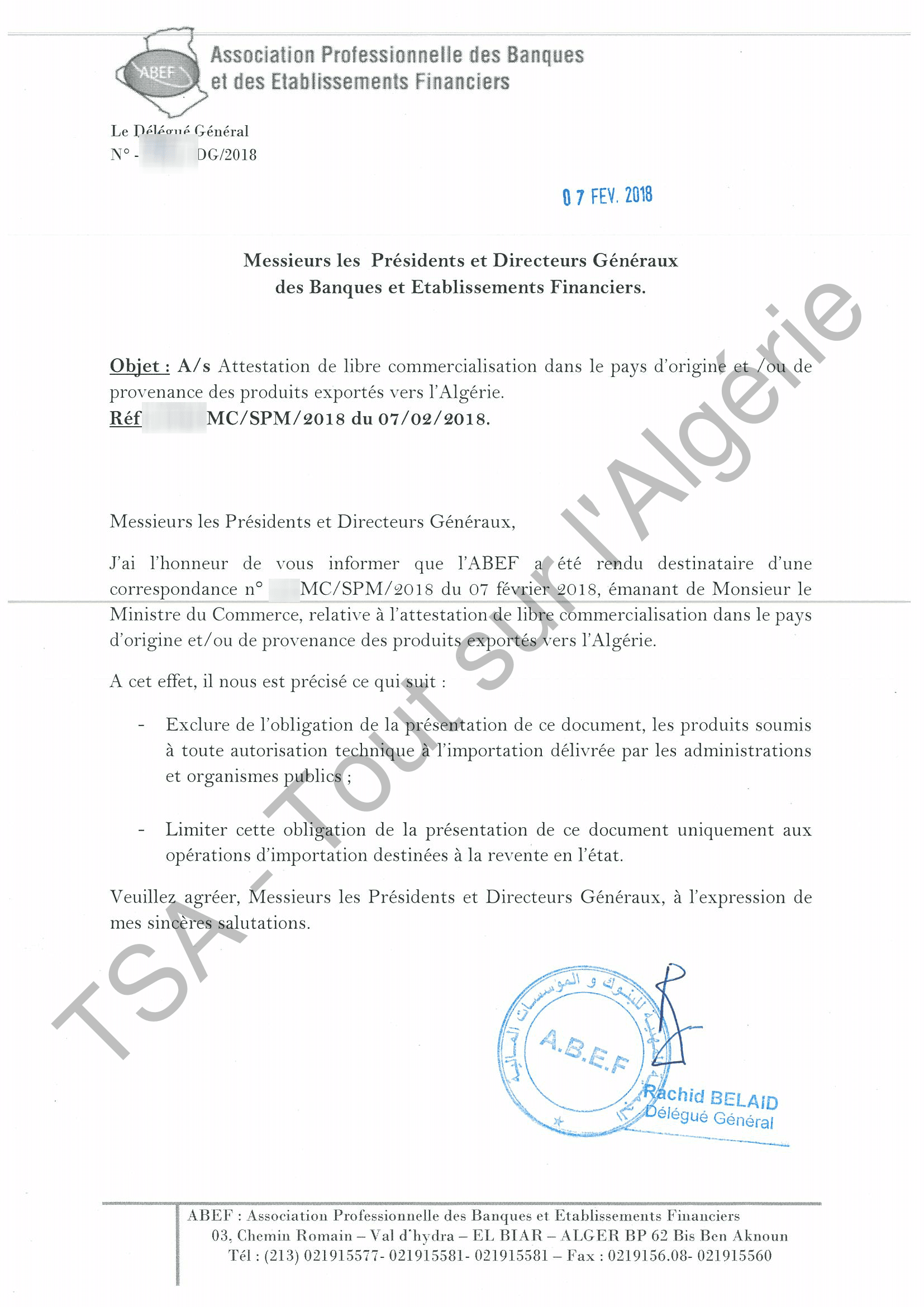 Du nouveau pour les importateurs. Dans une note adressée aux banques mercredi 7 février, dont nous détenons une copie, l’Abef précise que l’attestation de libre commercialisation dans le pays d’origine est réservée uniquement aux opérations d’importation destinées à la revente en l’état.
