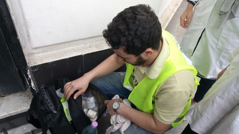 Salim, la trentaine, debout sur le trottoir avec, sur son dos, un sac bien rempli d’équipements et de consommables de premiers secours explique qu’il est à l’origine de l’initiative. « Nous sommes un groupe d’une trentaine de bénévoles. Il y a des secouristes, des médecins, des biologistes, des étudiants et des pompiers retraités », détaille-t-il.