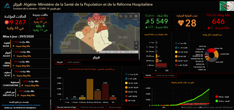 Autres éléments à retenir : le nombre de personnes sous traitement qui dépasse les 17000 (17.445) et le fait qu’aucun cas d’infection n’a été enregistré ces dernières 24 heures dans 19 wilayas. Pour les décès, le nombre continue d’augmenter d’une façon linéaire pour atteindre 646 morts dont 66% sont des personnes âgées de plus de 65 ans. Le nombre de personnes déclarées guéries du coronavirus a franchi la barre des 5500 (5547 exactement).