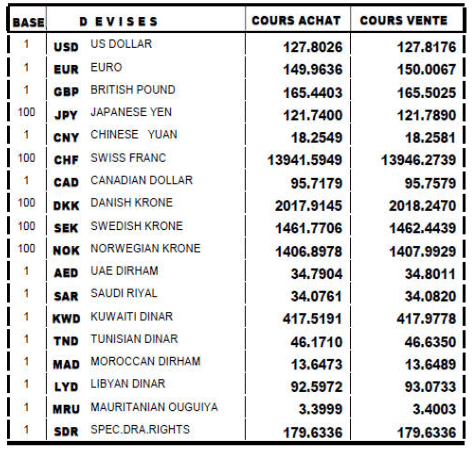 Pour le dollar, il a enregistré un léger repli à 127,81 dinars face au dinar.