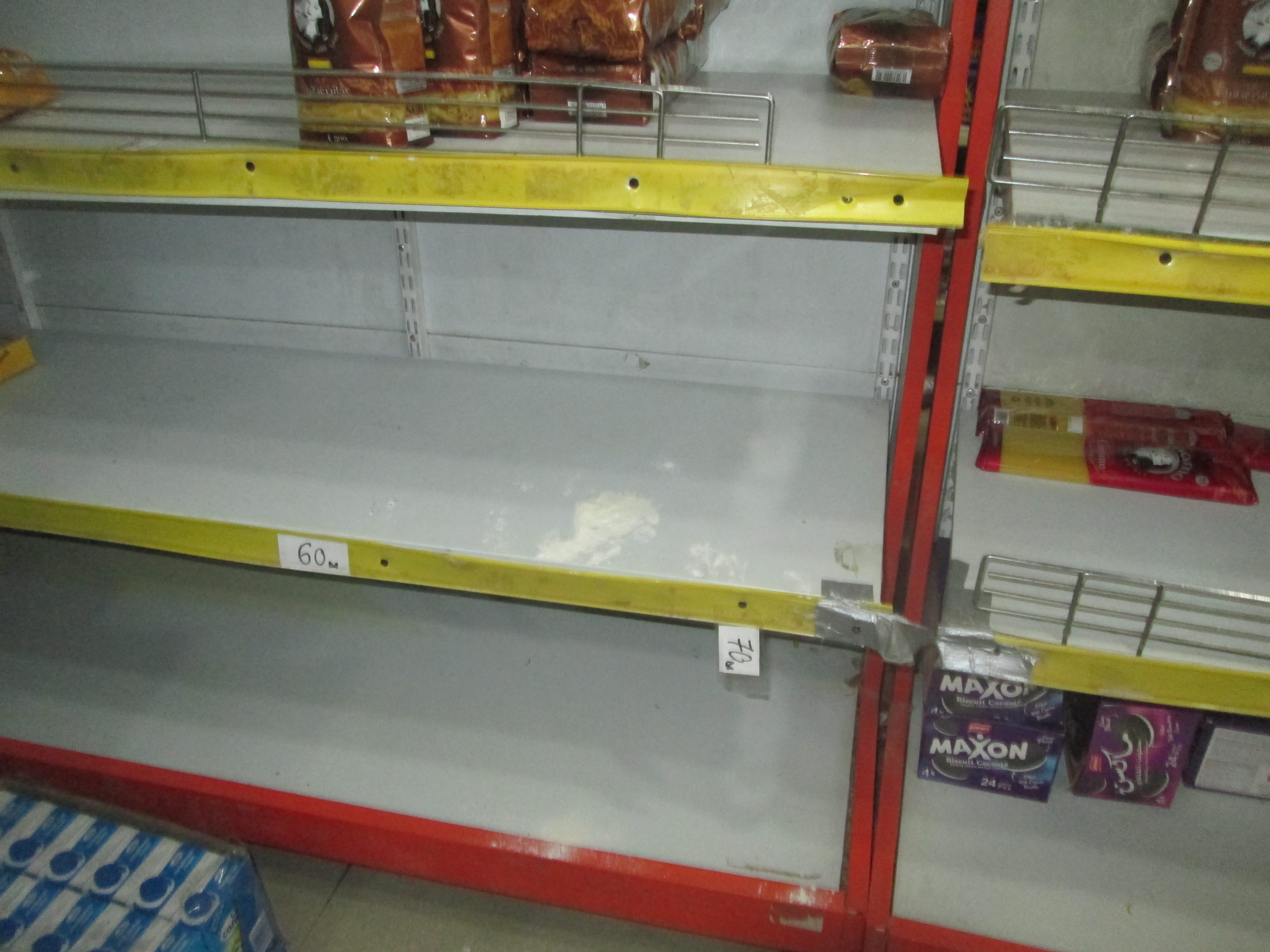 Ruée sur la semoule, la farine, les pâtes, les légumes secs et les détergents. Les étals se vident à vue d’œil (Photo : TSA )