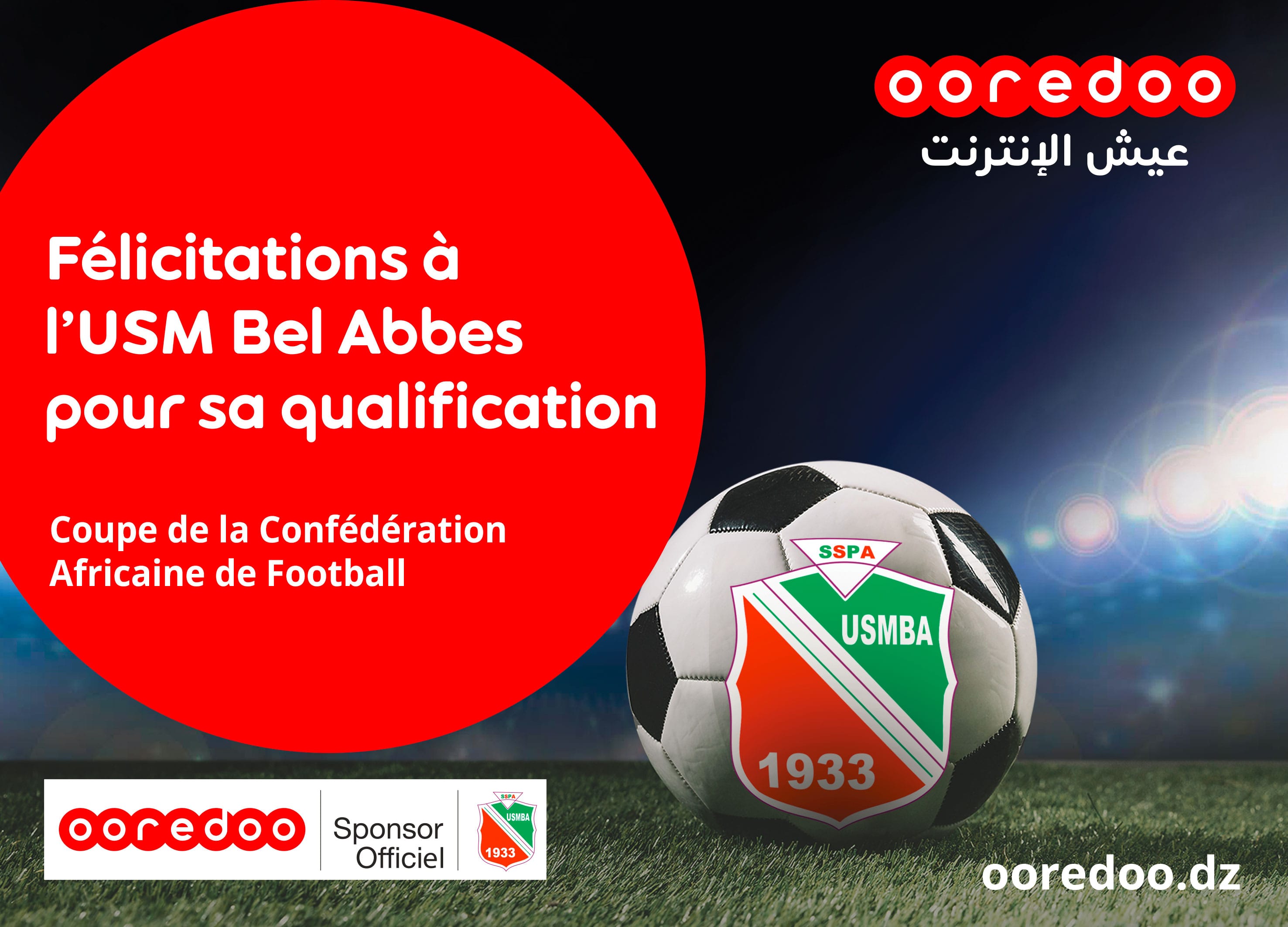 Suite à sa qualification aux 1/16 de finale de la Coupe de la Confédération Africaine de Football (CAF), lors du match retour face au club libérien Ship Corporate,  Ooredoo, Sponsor officiel de l’Union Sportive Medinat Bel-Abbès (USMBA), adresse ses chaleureuses félicitations aux joueurs et au staff technique et administratif du club de la Mekerra.