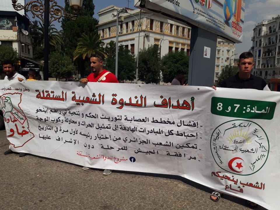 15h06. Constantine : des banderoles brandies par les manifestants.