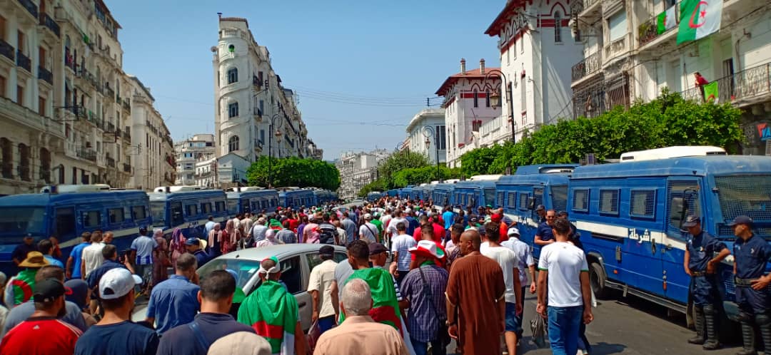 12h15. Alger : la police fortement déployée pousse les manifestants sur les trottoirs, les empêchant d’occuper la voie publique.