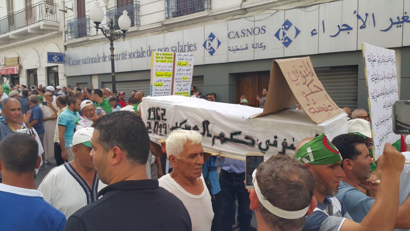14h51. Constantine : les manifestants portent un cercueil où est écrit : mort de la gouvernance des serpents.