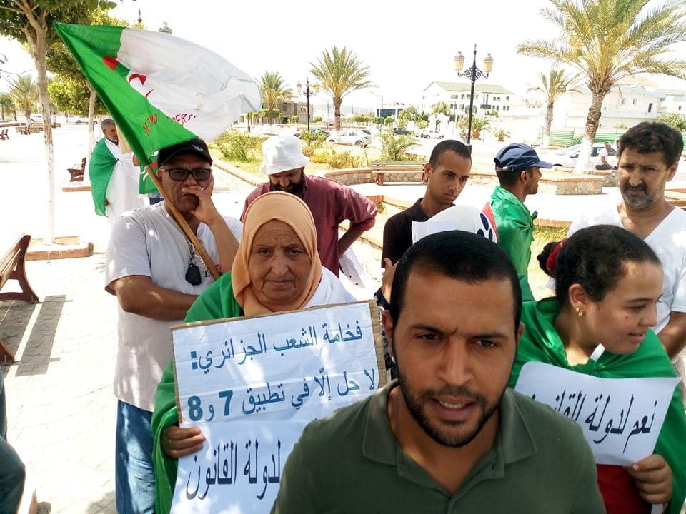16h08. Mostaganem : en dépit de la forte chaleur et la période des vacances, la mobilisation reste intacte dans la ville, maintenant les mêmes revendications réclamées chaque fin de semaine notamment l’instauration d’un état civil de droit et de justice. Les manifestants ont exprimé leur refus quant au dialogue en présence des deux « B » et insistent sur leur départ. (Source mostaganem-aujourdhui.com)