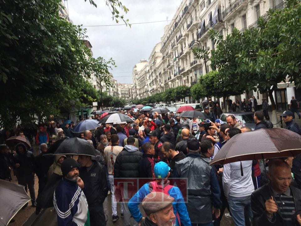 12h08. Alger : munis de parapluies les manifestants scandent des slogans hostiles au pouvoir.