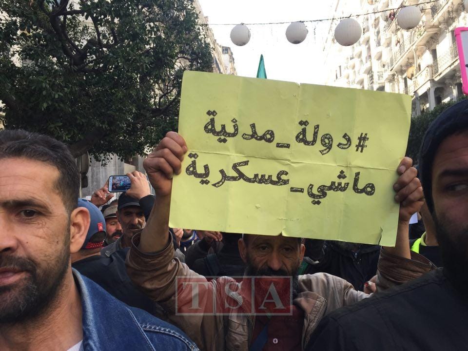 12h35. Alger : « Un Etat civil et non militaire », dit cette pancarte brandie par un manifestant.