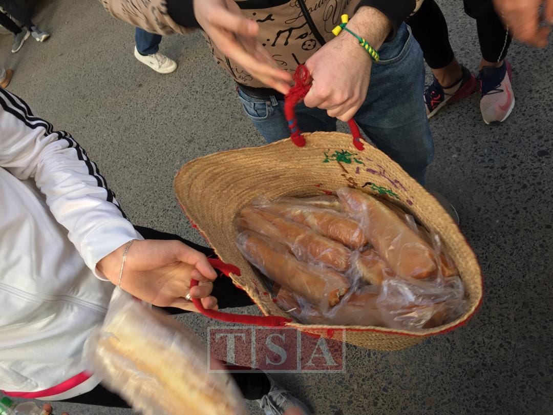 13h40. Des manifestants offrent de la nourriture pendant la prière.