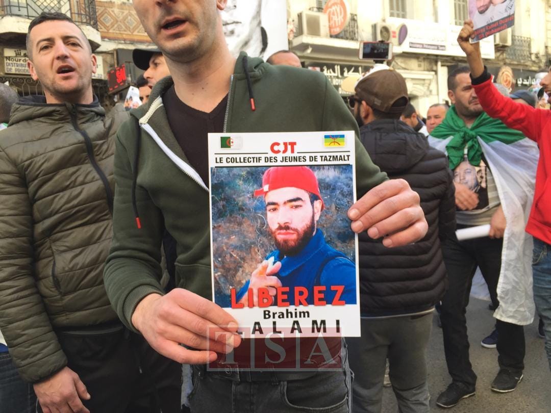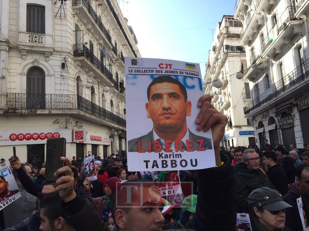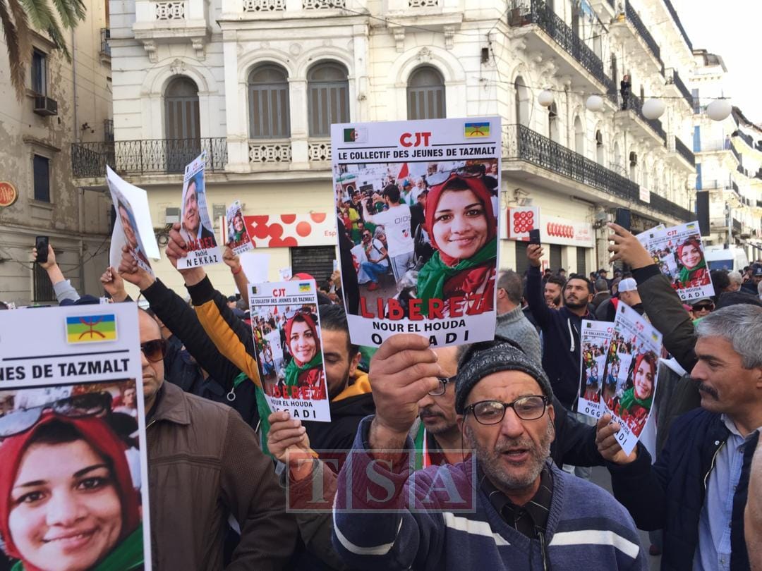 13h53. A Alger, plusieurs manifestants brandissent les portraits de Karim Tabbou et de l’étudiante Houda Ogger, actuellement en détention.