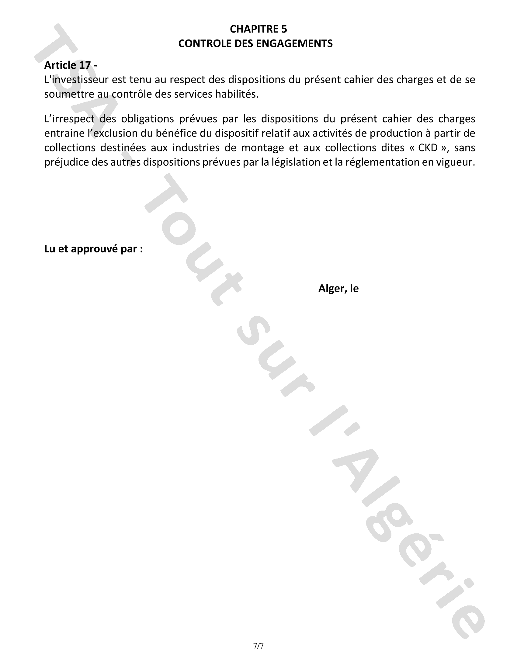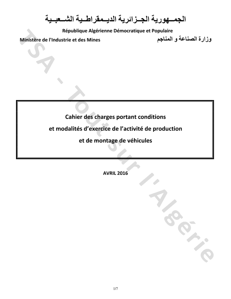 Dans le deuxième cahier des charges, un paragraphe a été ajouté et mentionne clairement l’obligation pour le constructeur de prendre une participation dans le capital de l’usine algérienne. Il est écrit : « La production ou le montage de véhicules particuliers, dans le cadre d’un nouveau partenariat industriel, est subordonné à une prise de participation du constructeur dans le capital social de la société de projet, dans le respect de la réglementation en vigueur ». À part cette obligation, les deux cahiers des charges sont identiques.