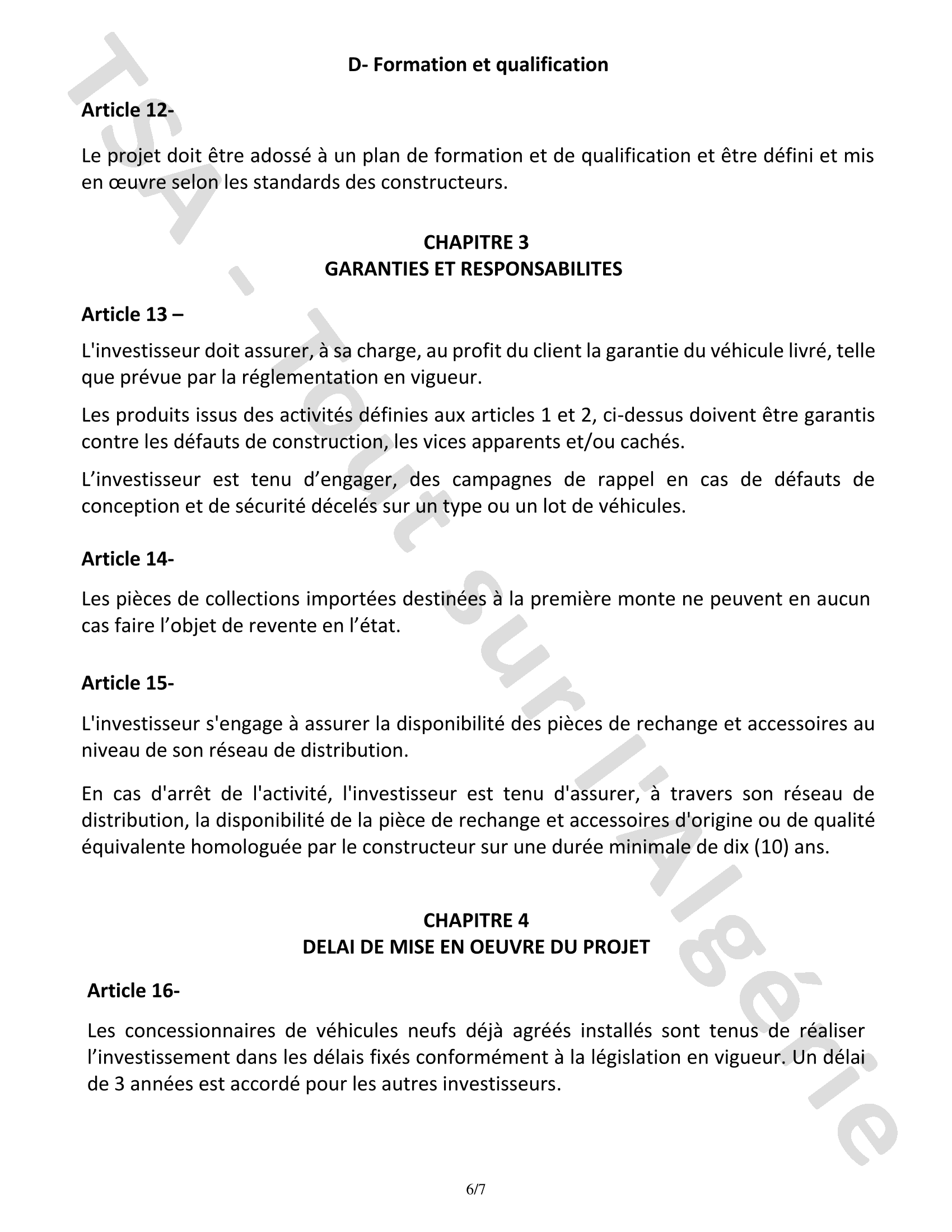 Dans le premier document, la présence du constructeur dans le capital de l’entreprise de production n’est pas obligatoire. L’alinéa 2 de l’article 4 (page 2) énonce : « Le protocole d’accord et/ou accord de partenariat précisant que l’investissement projeté s’inscrit dans le cadre d’un partenariat industriel avec un partenaire technologique de premier rang et de renommée internationale pour les véhicules motorisés ».
