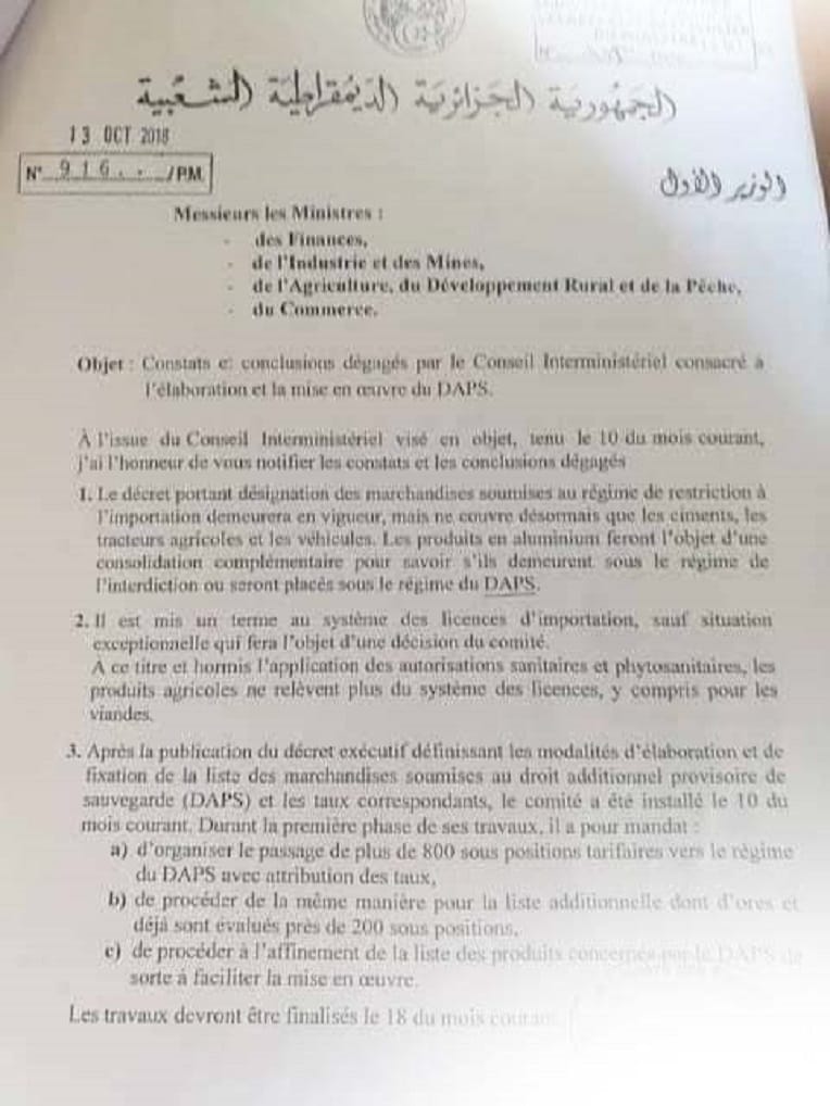 Décidé dans le projet de loi de Finances 2018, ce droit additionnel provisoire de sauvegarde doit être appliqué aux importations de certains produits finis qui sont actuellement soumis à la suspension provisoire à l’importation.