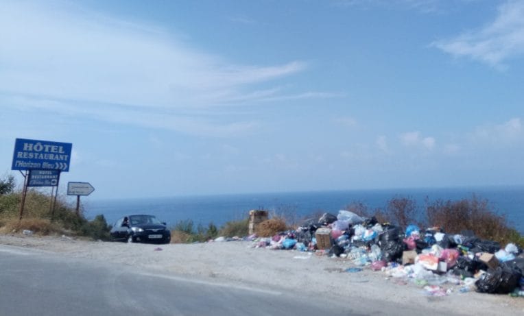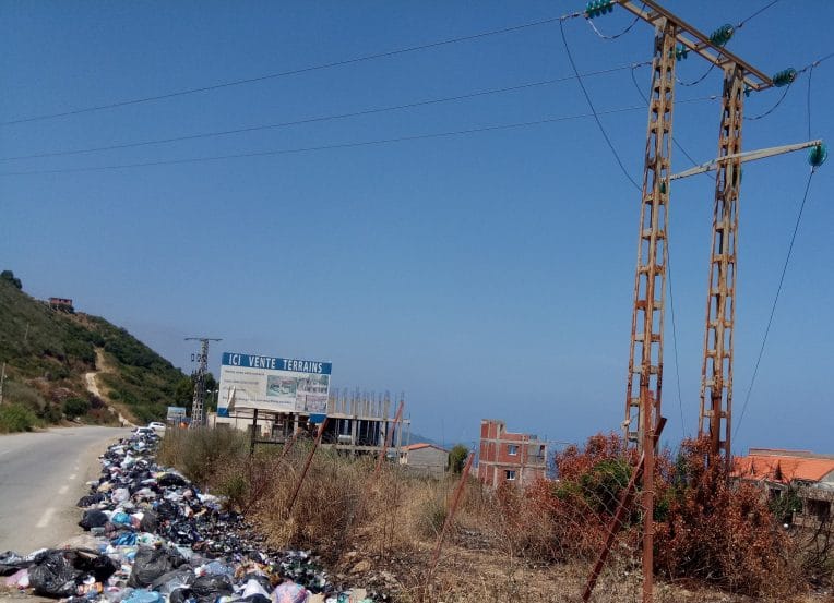 A l’ouest de Cap Sigli, sur la RN 24, une décharge publique sur le bord de la route, en face de la mer, ©TSA.