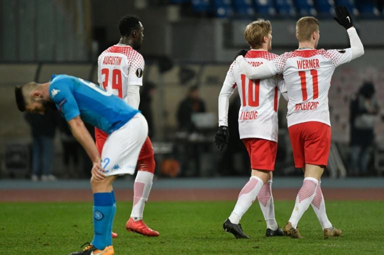 Naples, impressionnant leader du Championnat d’Italie qui restait sur cinq victoires d’affilée, se retrouve tout proche de l’élimination en Europa League après avoir été corrigé à domicile par le RB Leipzig (3-1), surprenant dauphin du championnat d’Allemagne, jeudi en 16e de finale aller.