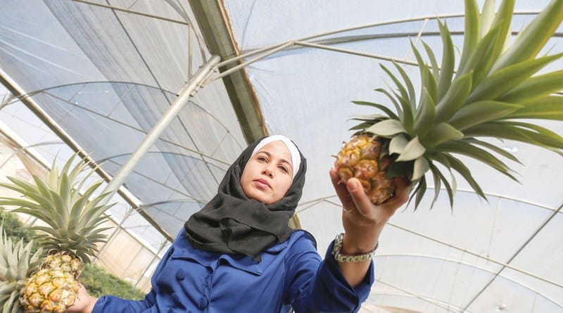 Les cultivateurs de la bande de Gaza, au climat semi-aride, ont recréé les conditions favorables à l’ananas, plante tropicale, explique Moussa al-Jadba, ingénieur agronome qui supervise le projet parrainé par le gouvernement néerlandais.