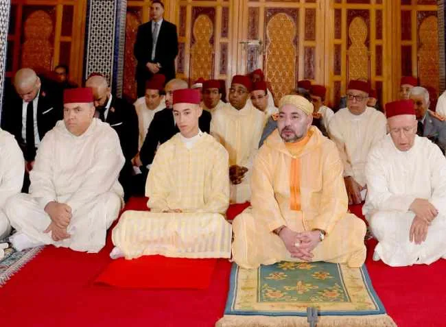 20 avril 2018. Les frères Azaitar prient à la mosquée Hassan de Rabat juste derrière le roi et son fils le prince Moulay Hassan. (DR)