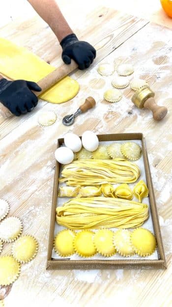 Dans l’atelier, qui nous a ouvert ses portes, s’active une petite équipe qui façonne les pâtes à la main. La gérante veille au grain. Le regard souvent posé sur sa montre, elle orchestre la cadence avec sérieux et exigence, insufflant à chaque geste la rigueur de la grande cuisine.