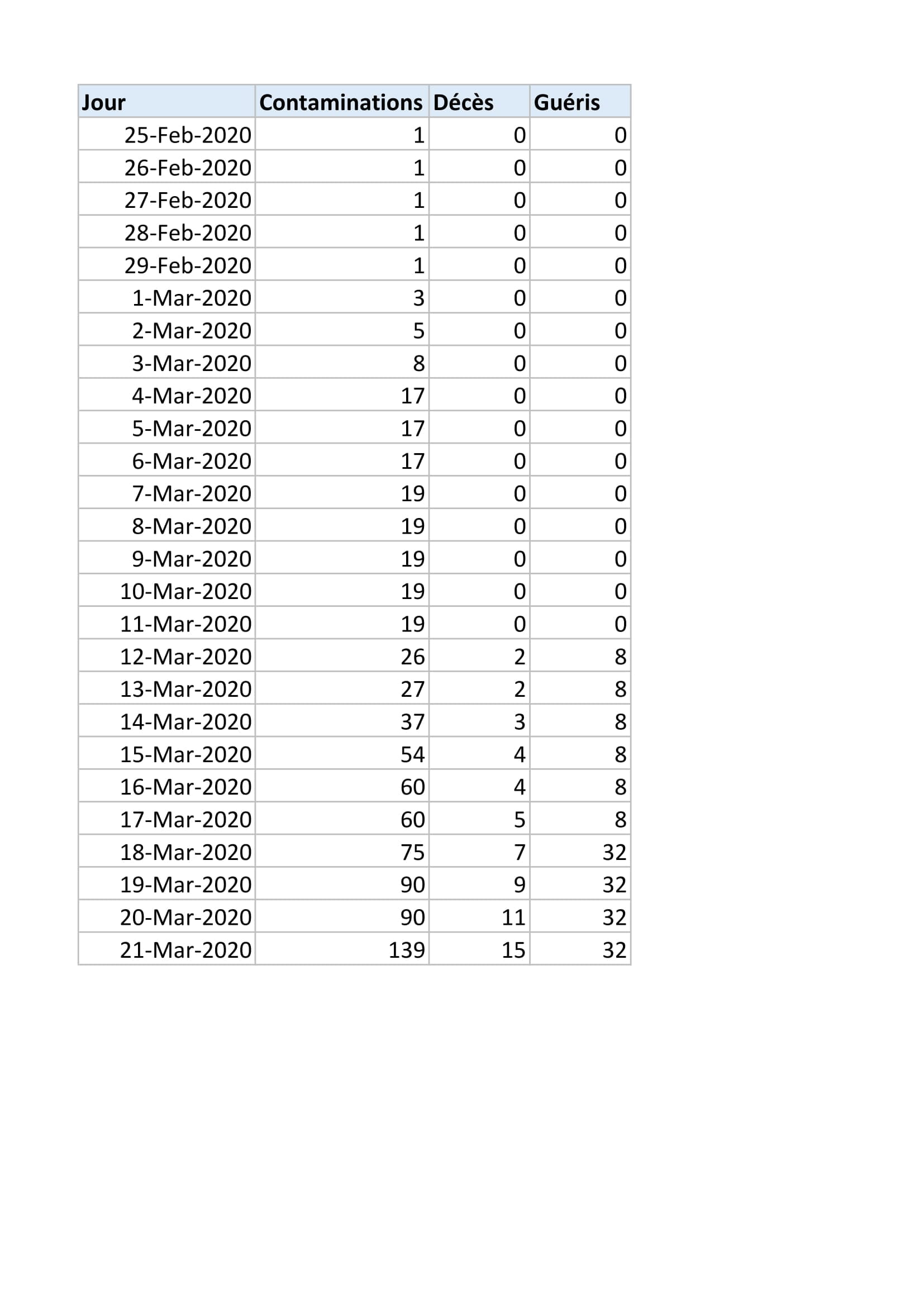 Le tableau montre ces évolutions en chiffres depuis le 25 février.