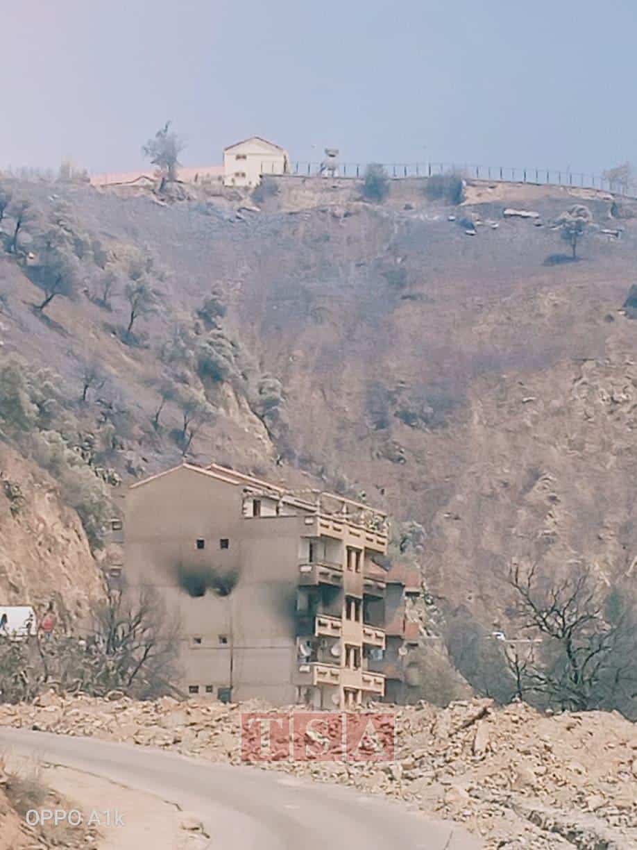 Là aussi, les étincelles ont dû être emportées par les vents de l’autre côté de la rivière, des collines de Beni Douala dont il ne reste presque rien. La forte canicule et les vents forts qui sévissent dans la région n’ont pas arrangé les choses.