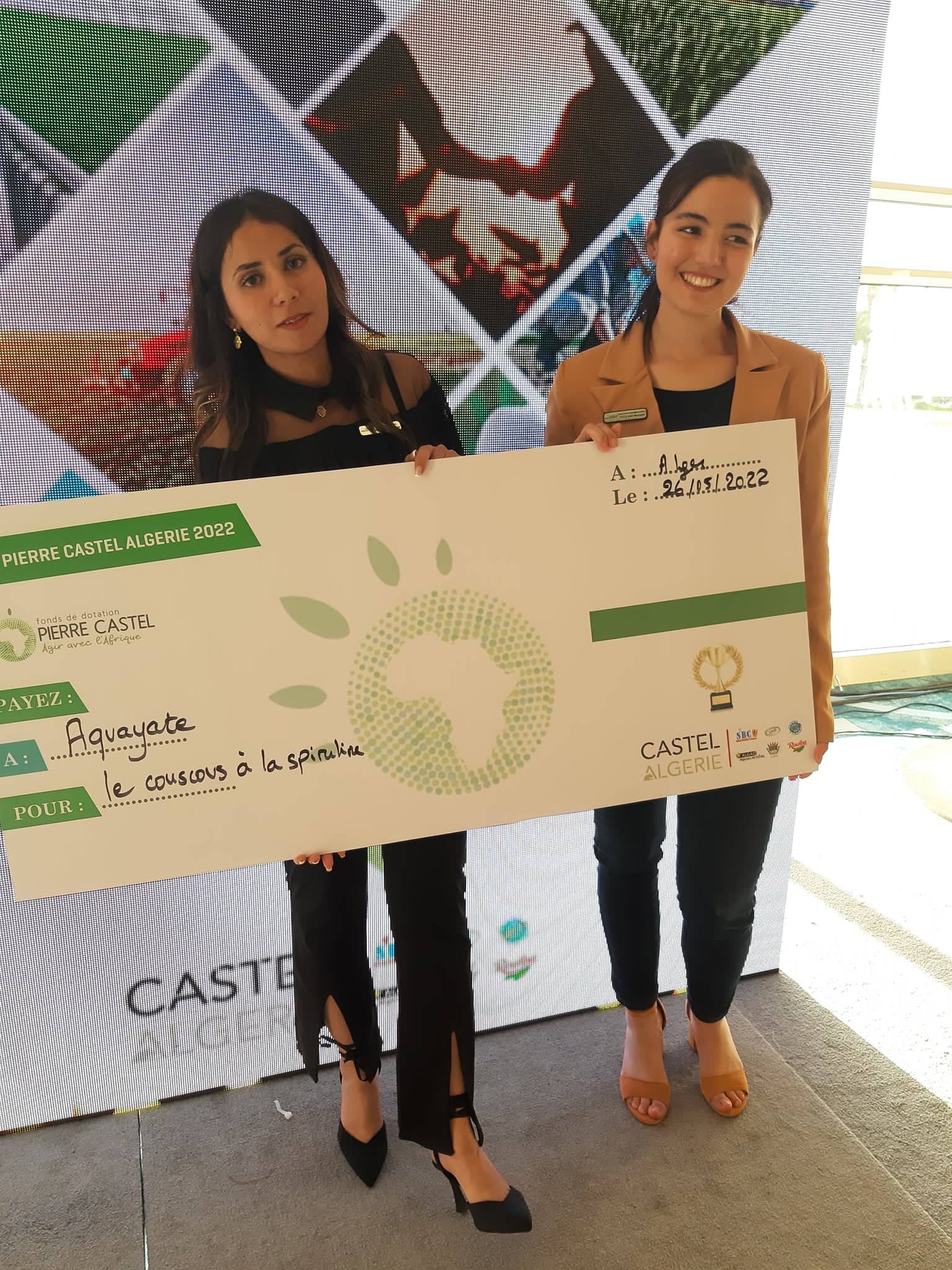 Ces deux jeunes filles se sont distinguées par leur couscous à la spiruline, une microalgue riche en protéines et en vitamines qu’elles produisent elles-mêmes. Un projet qui contribue à fournir du travail aux femmes rurales de la région qui sont chargées de rouler le couscous.