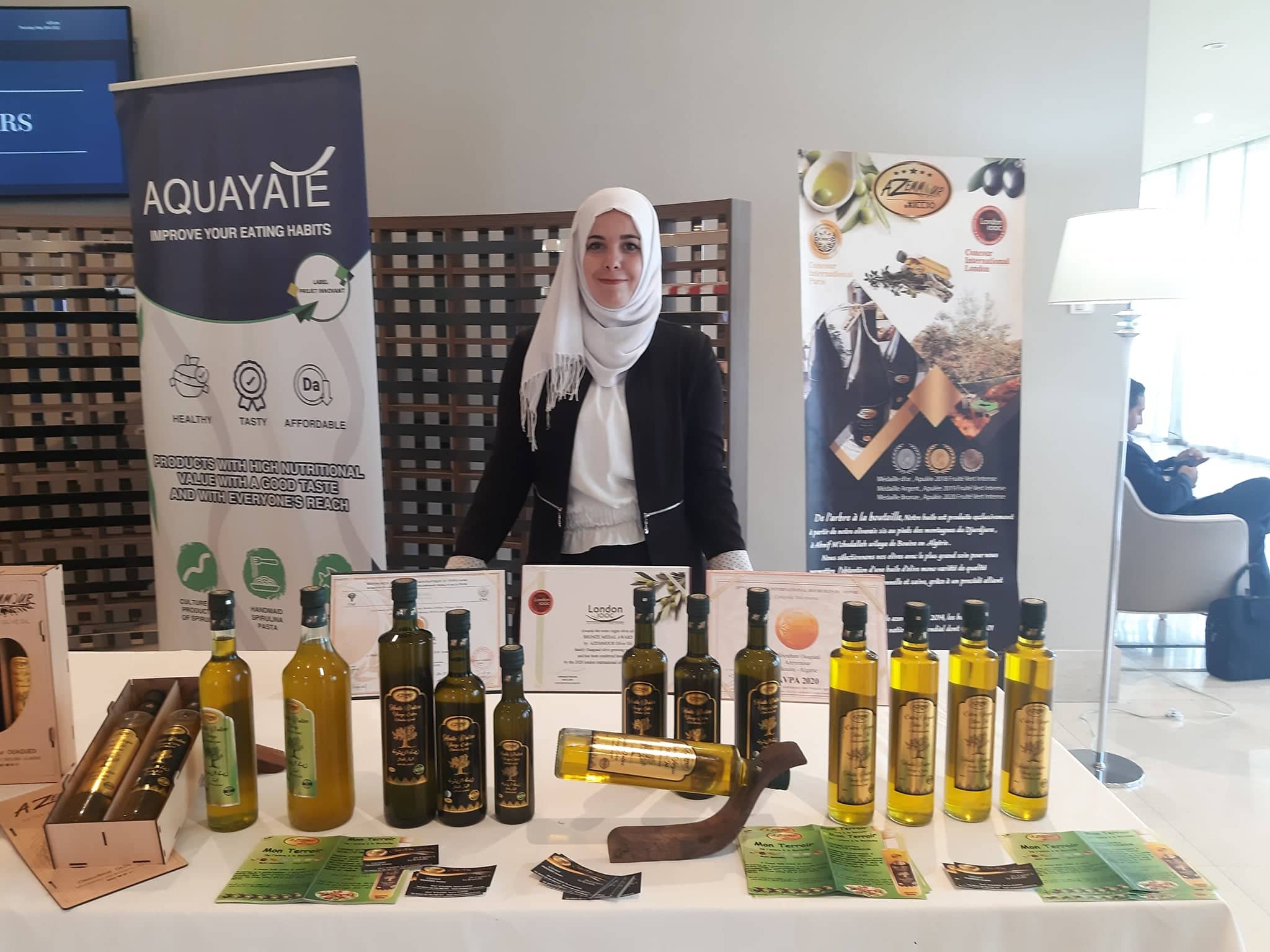 Kahina Ouagued (25 ans) est arrivée de M’chedallah (Bouira). Elle a abandonné ses études de droits pour travailler dans la réserve familiale oléicole. Cette exploitation produit une huile d’olive premium « Azemmour » qui a reçu plusieurs prix à l’international.