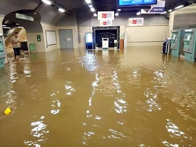 Les entrées du métro ont été envahies par les eaux provocant l’arrêt du service. Les eaux ont également envahi les escaliers supérieurs du nouvel aéroport international Houari Boumediene, ont constaté les correspondants de l’APS.