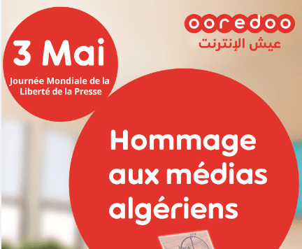Communiqué. Ooredoo marque la Journée Internationale de la Liberté de la presse célébrée, à travers le monde, le 03 mai de chaque année et rend hommage aux journalistes et aux professionnels des médias algériens.