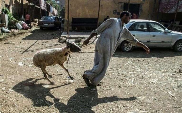 Dans le quartier populaire de Sayeda Zeinab près du centre du Caire, plusieurs petits commerces exposent leurs moutons dans des ruelles non asphaltées et boueuses où circulent, en forçant le passage, les tuk-tuks (tricycles à moteur qui font office de taxis).