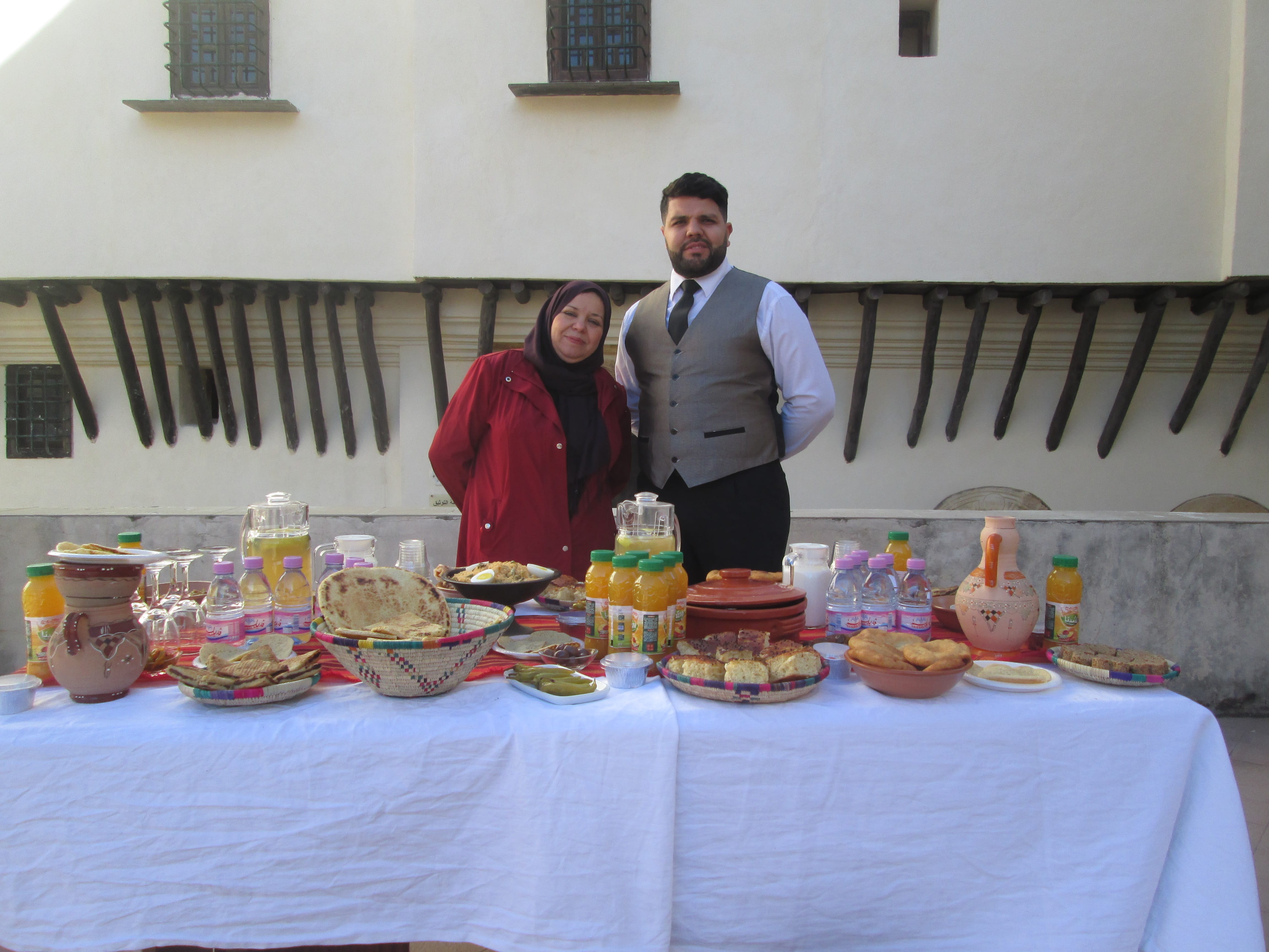 Une autre exposante a tenu à ce que sa table soit l’une des plus belles durant cette semaine culturelle dédiée au nouvel an amazigh. Hafidha Yaddaden offre une dégustation de ses préparations : makfoul (couscous cuit à la vapeur avec des légumes), sfendj, cherchem, khobz eddar, bradj, rfiss.