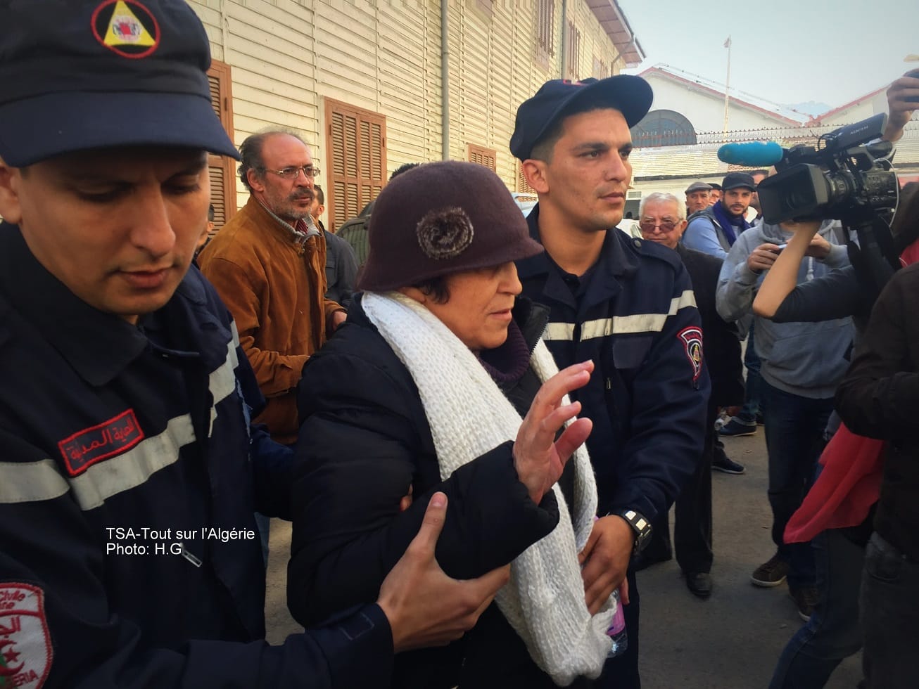 Quelques minutes après le début du rassemblement, Hadda Hazem, complètement affaiblie, sort du siège de son journal. Certains journalistes ont pris la parole dont Hmida Ayachi, ancien patron d’Algérie News. « Il s’agit d’une grève de principe qui ne concerne pas seulement Al-Fadjr, mais tous les journaux », explique l’ancien éditeur qui affirme que Hadda Hazem se trouve dans l’incapacité de parler.