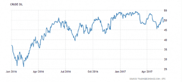 Toutefois, les efforts consentis, sous la forme de perte de parts de marché, ont permis de hisser les cours (du WTI) dans la fourchette des 50-55 dollars (même s’il a rechuté lourdement il y a quelques semaines), contre 40-50 dollars entre avril et novembre 2016. Visiblement, l’organisation s’en contente, tablant sur une baisse des stocks vers la fin de l’année.