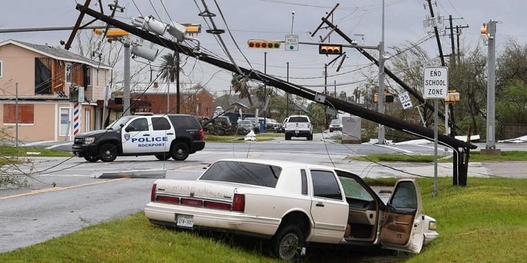 « Des entreprises et des maisons ont été complètement détruites et, à coup sûr, un grand nombre de vies vont être perturbées de manière importante », a déclaré C.J. Wax, maire de Rockport, sur la chaîne de télévision MSNBC. L’aéroport et le lycée de cette ville de 10.000 habitants ont également souffert.
