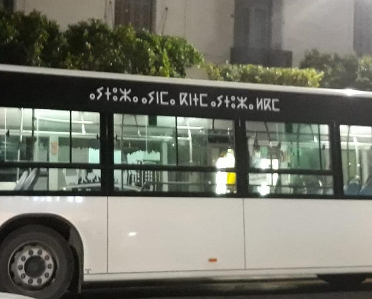 L’Entreprise de transport urbain et suburbain d’Alger (Etusa) doit réviser ses cours de tamazight. Voulant transcrire, sur plusieurs de ses bus, son slogan « Etusa partout, Etusa pour tous », traduit en arabe « Etusa aynama kountoum, Etusa lakoum », en caractères tifinagh, elle a commis des fautes.