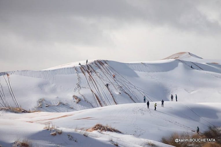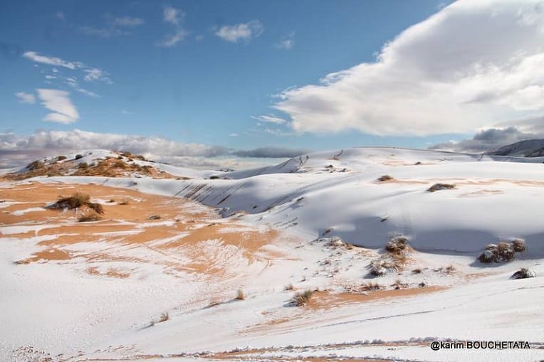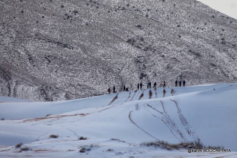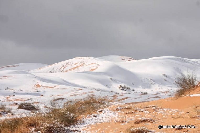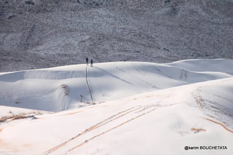 Depuis lundi, la neige tombe un peu partout en Algérie, y compris dans le Sahara. A Ain Safra, elle a une nouvelle fois recouvert les dunes hier mardi 6 février, comme on peut le voir sur ces photos.