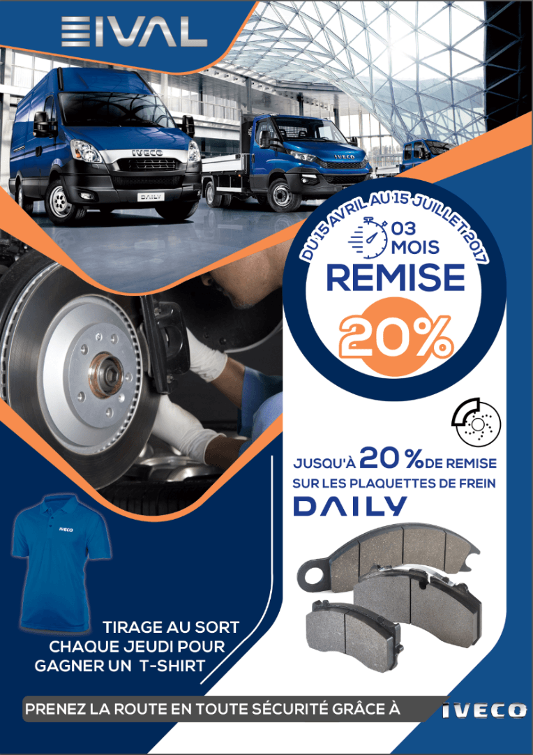 Remise de 20% sur les plaquettes de freins Iveco Daily