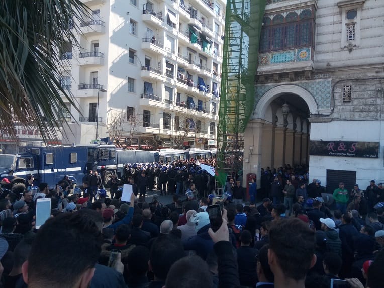 A l’entrée du boulevard Zighoud Youcef, un autre cordon de CRS bloque les manifestants. Le face-à-face est non-violent.