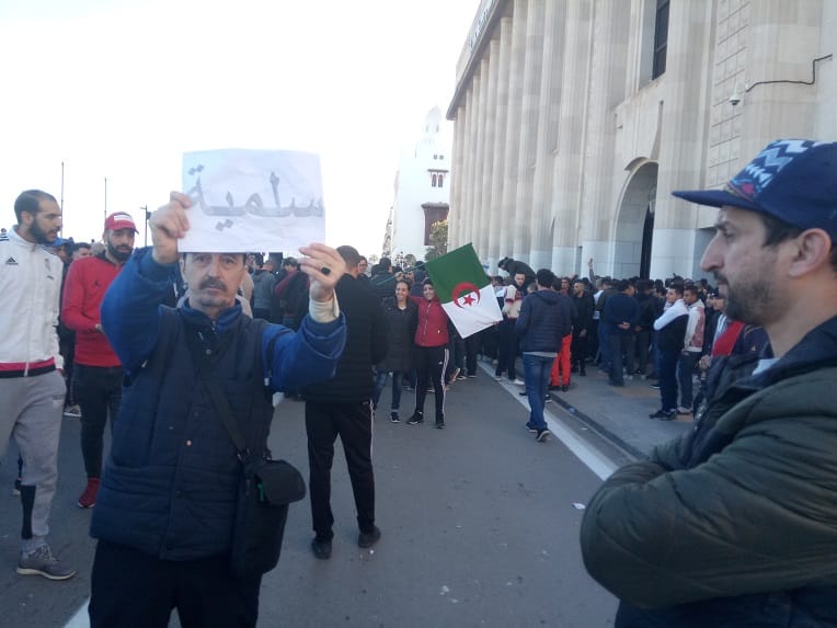 Peu avant 17 heures, alors que des milliers de manifestants étaient rassemblés au niveau de la Grande Poste, le poster de Bouteflika, accroché sur la façade su siège du bureau de wilaya du RND est arraché et déchiré.