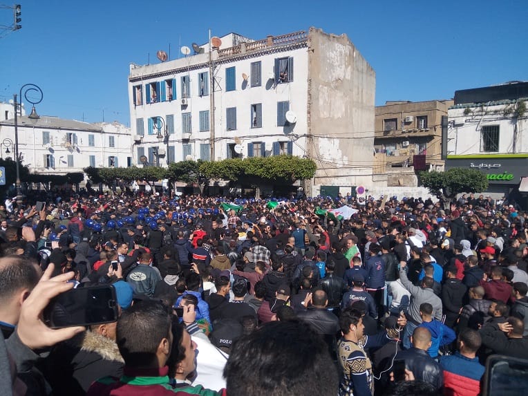 Vers 17 heures : un immense rassemblement sur la place Maurice Audin, le boulevard Mohamed 5, jusqu’à la Grande Poste et le palais du Gouvernement.