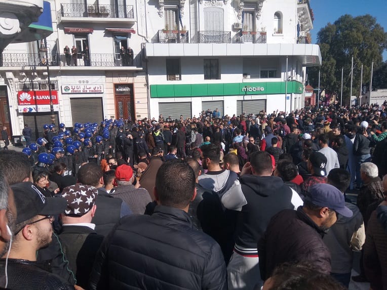 Après avoir rompu les cordons de CRS autour de la place du Premier Mai, les manifestants ont été bloqués à l’entrée du boulevard Hassiba.