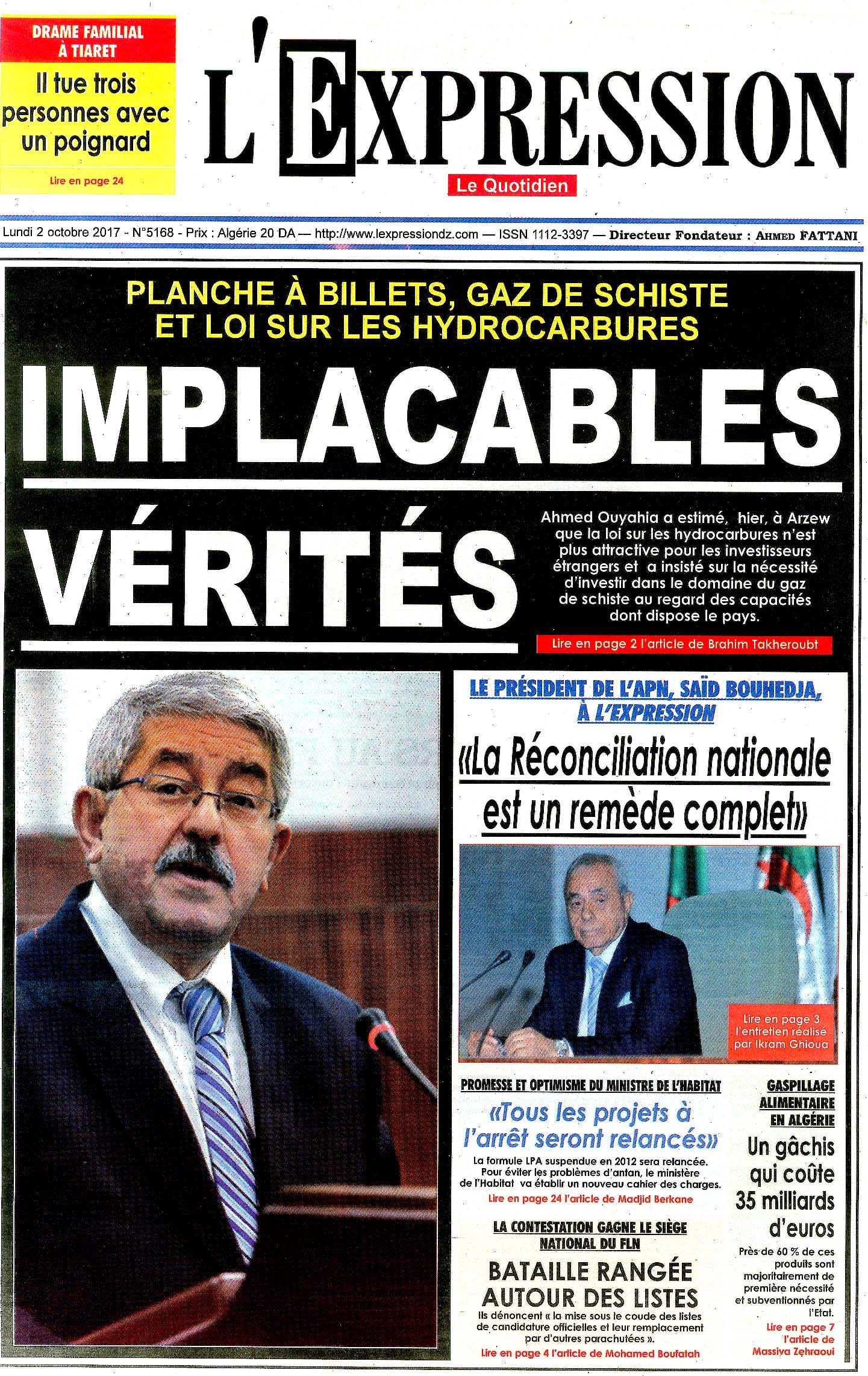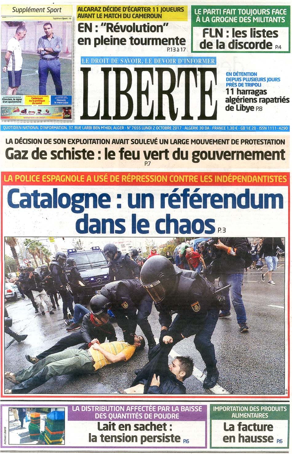 El Moudjahid Ennahar L'Expression Le Soir d'Algérie Le Temps d'Algérie Le Quotidien d'Oran El Khabar Liberté Waqt al-Djazair El Watan
