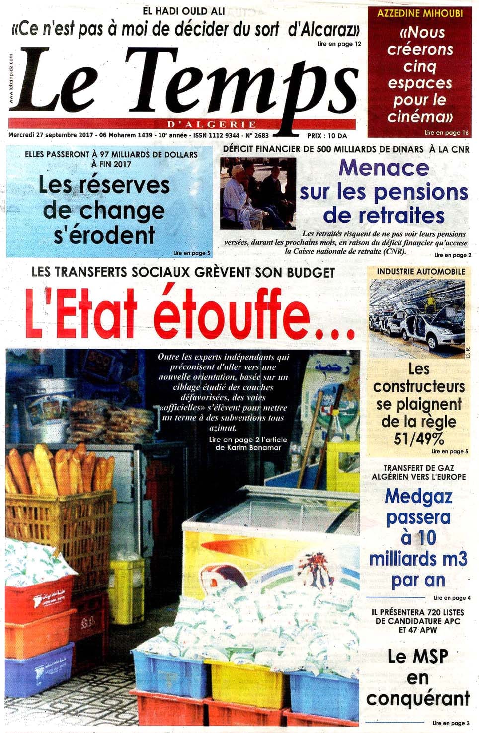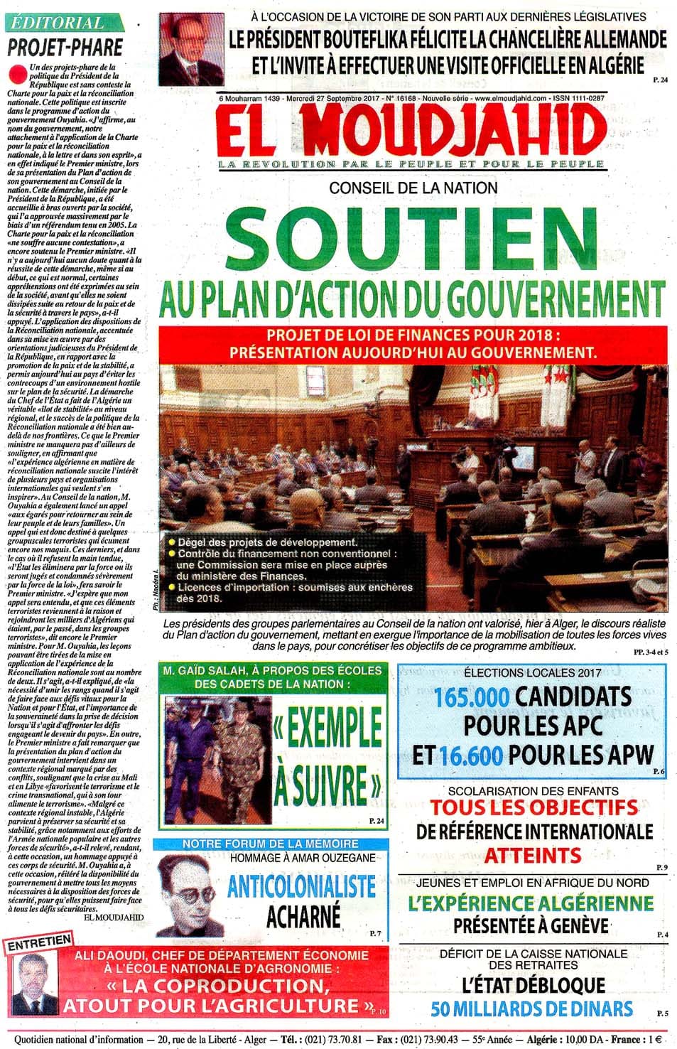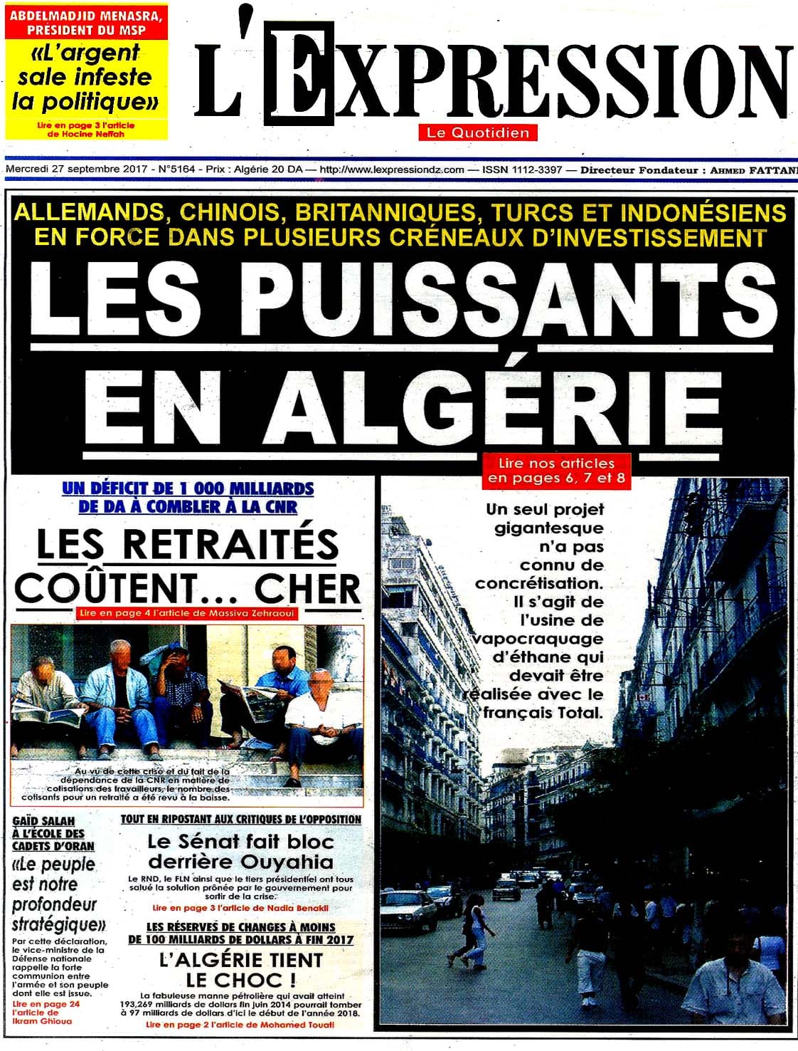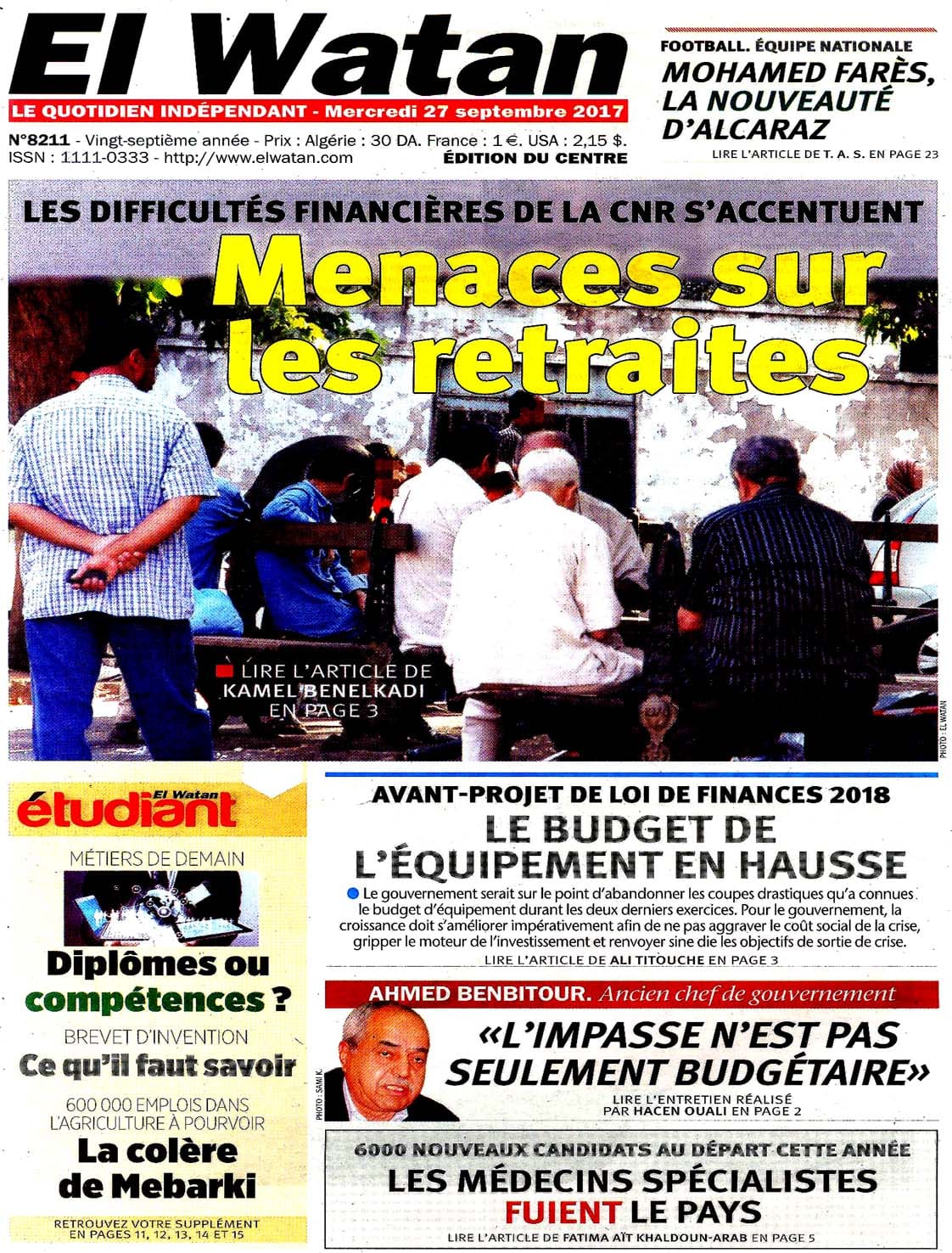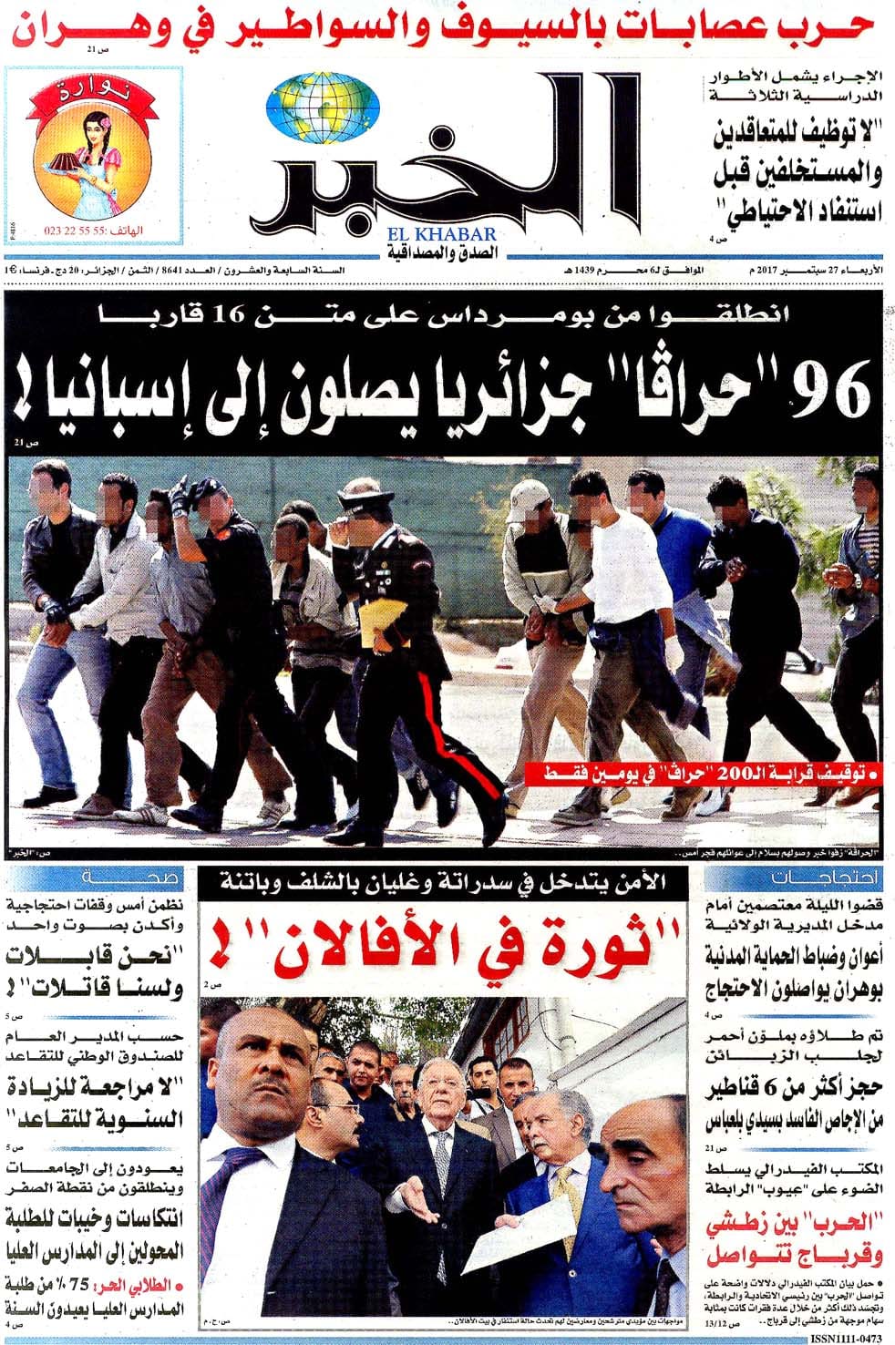 El Moudjahid Ennahar L'Expression Le Soir d'Algérie Le Temps d'Algérie Le Quotidien d'Oran El Khabar Liberté   El Watan