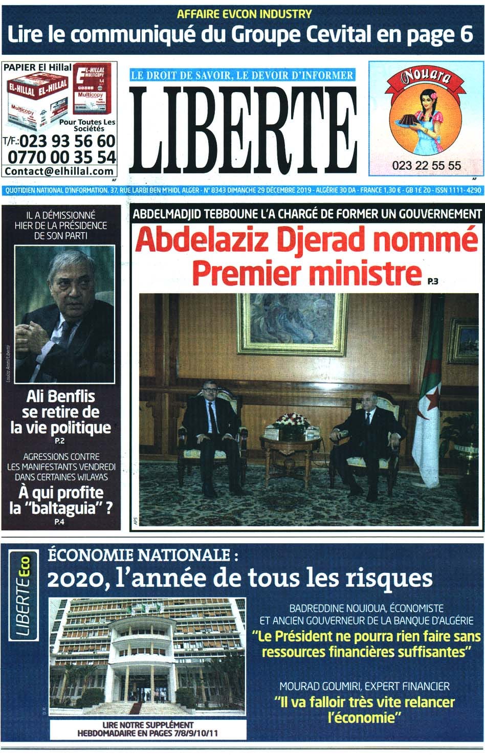 El Moudjahid L'Expression Le Soir   Le Quotidien d'Oran El Bilad El Khabar Liberté Reporters El Watan